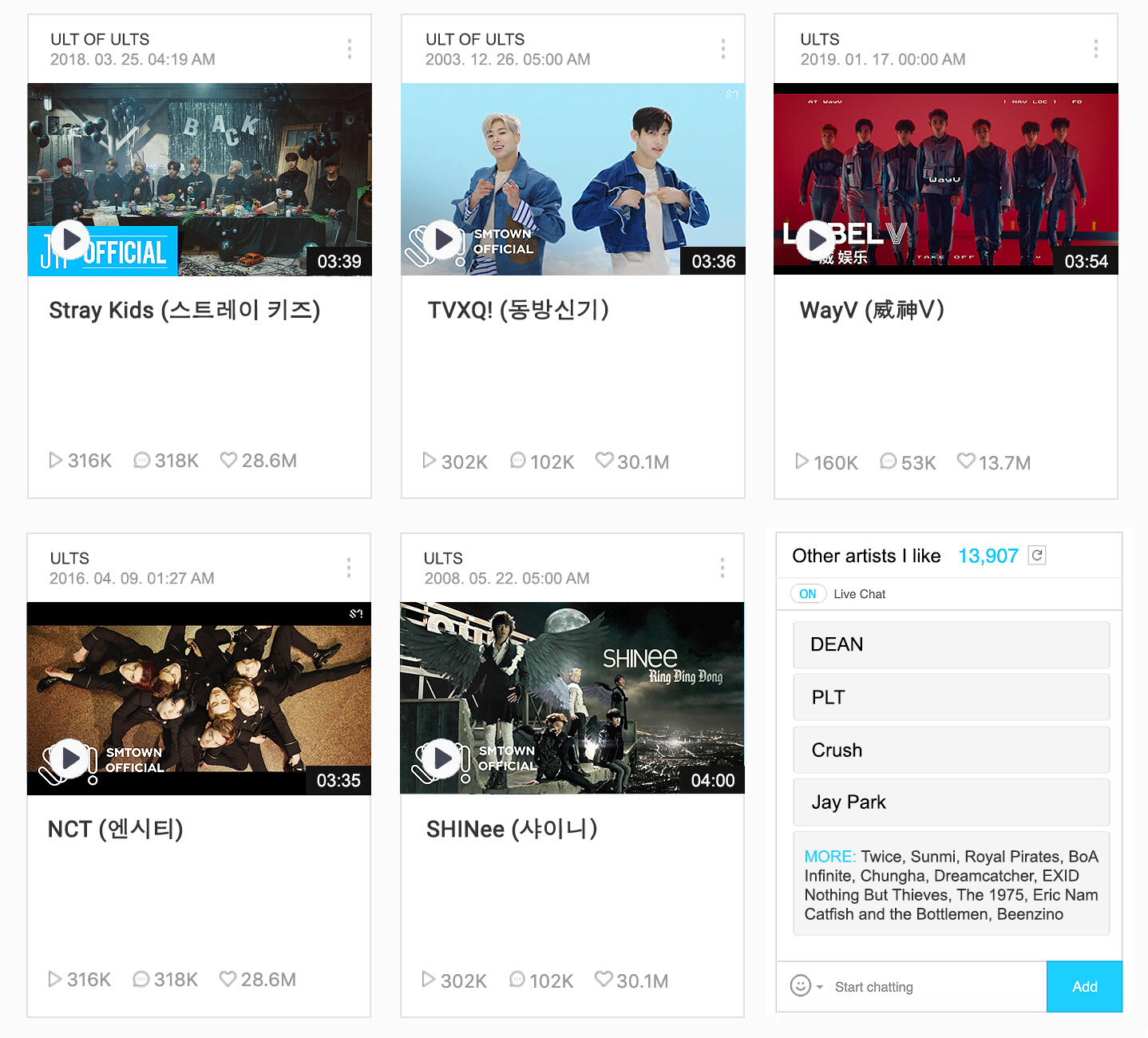 ** regulars :== nct . superm . dean . plt . exid . twice .
